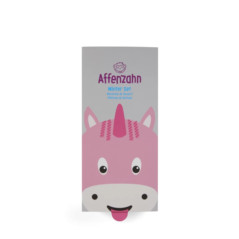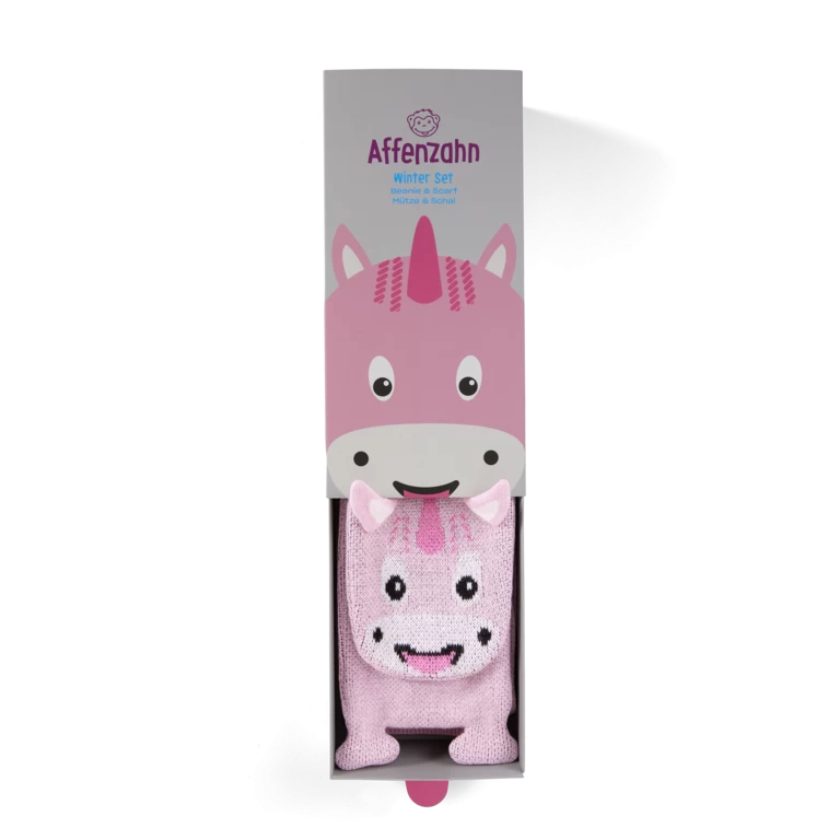 Affenzahn Geschenkset Winter Mütze und Schal Motiv Einhorn