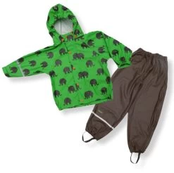CeLaVi Regenanzug Grün Mit Braunen Elefanten Set Regenhose + Regenjacke