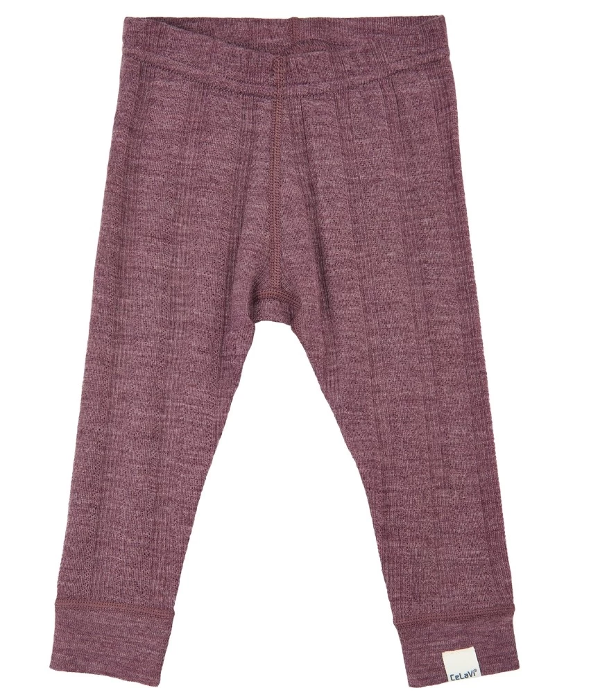 Kuschelwarme Celavi Mädchen Baby-Leggins aus Merinowolle. Fein gewebtes Ajour-Muster mit zart strukturierten Streifen und kleinen Herzchen. Die ideale Unterziehhose für die kalte Jahreszeit. Durch die schöne dezente Farbe eignet sich die Legins auch sehr gut für Babys Taufe.
