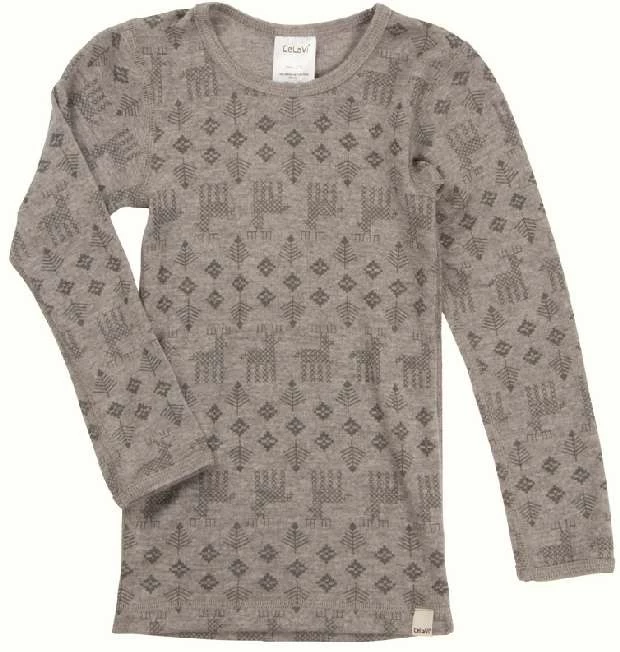 Celavi Langarmshirt Grau Melange Elche Unterhemd Wolle