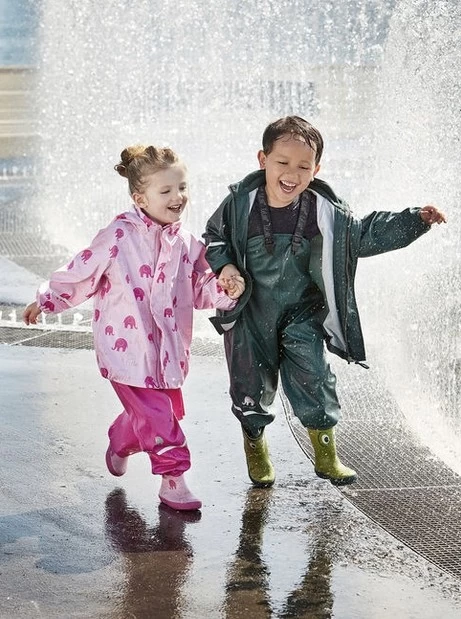 Da macht Schmuddelwetter Spaß – im wasserdichten Celavi Regenanzug können kleine Pfützenspringer draußen unbeschwert toben und spielen. Das Set besteht aus Regenjacke und dazu passender Regenhose. Ideal für den Kindergarten und Spielplatz. Wasserdicht, bequem geschnitten und klein zusammenlegbar.