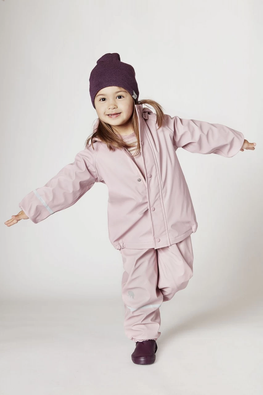 Da macht Schmuddelwetter Spaß – im wasserdichten Celavi Regenanzug können kleine Pfützenspringer draußen unbeschwert toben und spielen. Das Set besteht aus Regenjacke und dazu passender Regenhose. Ideal für den Kindergarten und Spielplatz. Wasserdicht, bequem geschnitten und klein zusammenlegbar.