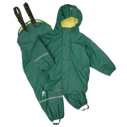Wasserdichte Thermo Regenjacke mit passender Thermo Regenhose für Jungen mit Trägern. Bequeme Thermo Kinderregenjacke für kleine Sandkastenhüpfer und Outdoorpioniere. Die dazu gehörende Regenhose hat ein Fleece Innenfutter. Durch die getapten und verschweissten Nähte kann kein Wasser sickern, und die Kleidung darunter bleibt auch bei Matschwetter sauber und trocken.