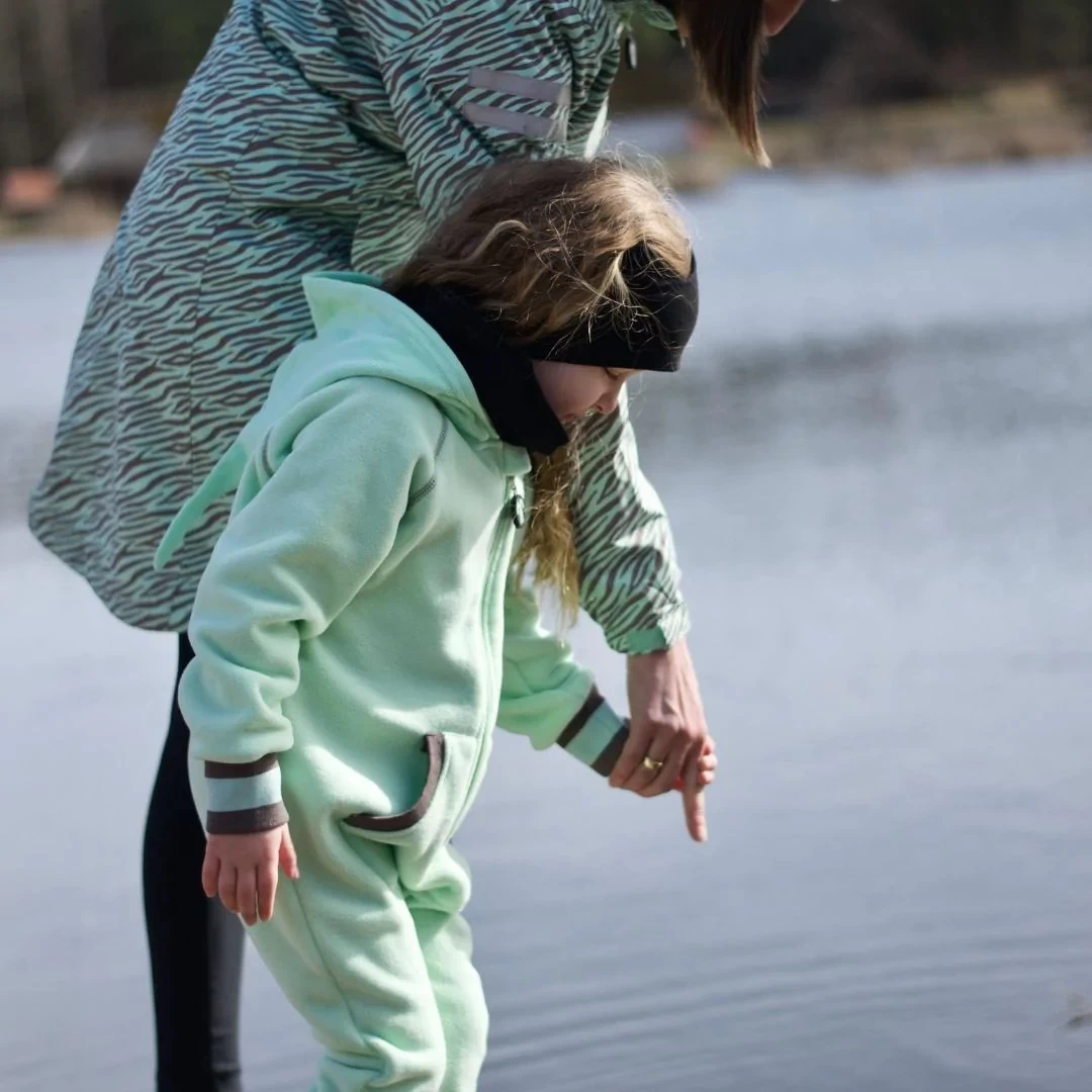 - Leichter Anzug, der solo als Spielanzug oder als Wärmeschicht unter dem Ducksday Regenanzug getragen werden kann