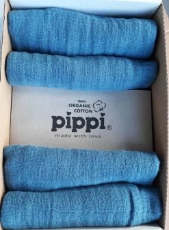 Pippi Babywear Mulltücher 4er Pack Mittelblau Organic Baumwolle