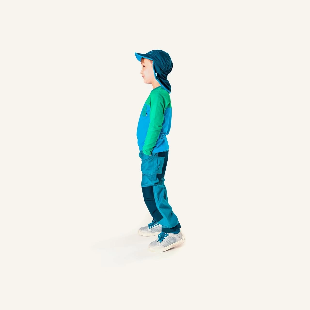 Schützt mit seinem extra langen Nackenteil vor der Sonne, ist noch dazu wasser- und schmutzabweisend: Dieses Cap schafft den Tag am Strand mit links, da muss keine StandpiratIn früher als gewollt die Segel streichen. Hingucker sind die farblich kontrastierenden Paspeln an Schirm und Nackenteil, die bunten Sichtnähte und der klassische Knopf obenauf.