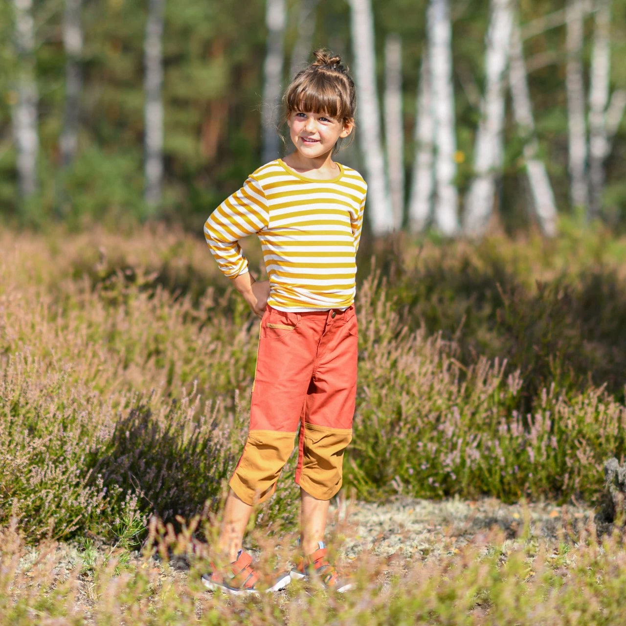 Sommerlich leichtes Blockstreifen Langarm-Shirt für Kinder. Die schönen Blockstreifen passen zu jedem Outfit. Das luftig leichte Material ist auch an heißen Tagen angenehm auf der Haut.