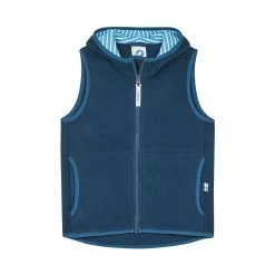 Himmelblau-weiß gestreift wie das Innenfutter der Kapuze – die Weite von Himmel und Strand sind immer mit dabei, wenn POPPELI ausgeführt wird. Die kuschelige Fleeceweste mit der finkid Zwergenkapuze (ab Größe 120/130 mit runder Kapuze) wärmt den Rumpf und lässt den Armen alle Freiheit – zum Buddeln, Muschelsuchen und Keschern. Meshfutter. Auch als Zip In Innenjacke kombinierbar.