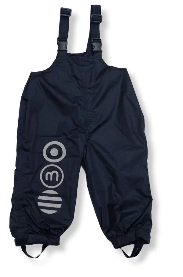 Wasserdichte Minymo Regenhose in ganz dunklem blau ( fast schwarz ). Ideal zum erkunden der Wiese und zum Buddeln in der Sandkiste . Bequem geschnitten, unter die atmungsaktive Regenhose mit verstallbaren Trägern passt im Winter auch eine warme Thermohose darunter . Minymo Function Wear Regenkleidung für Kinder ist die perfekte Outdoorbekleidung für alle aktiven Kinder die bei jedem Wetter draußen toben und spielen.