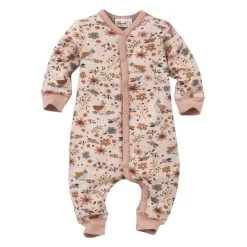 People Wear Organic Langarm Overall rosa mit Druck „Wintervögel“ aus Bio-Baumwolle