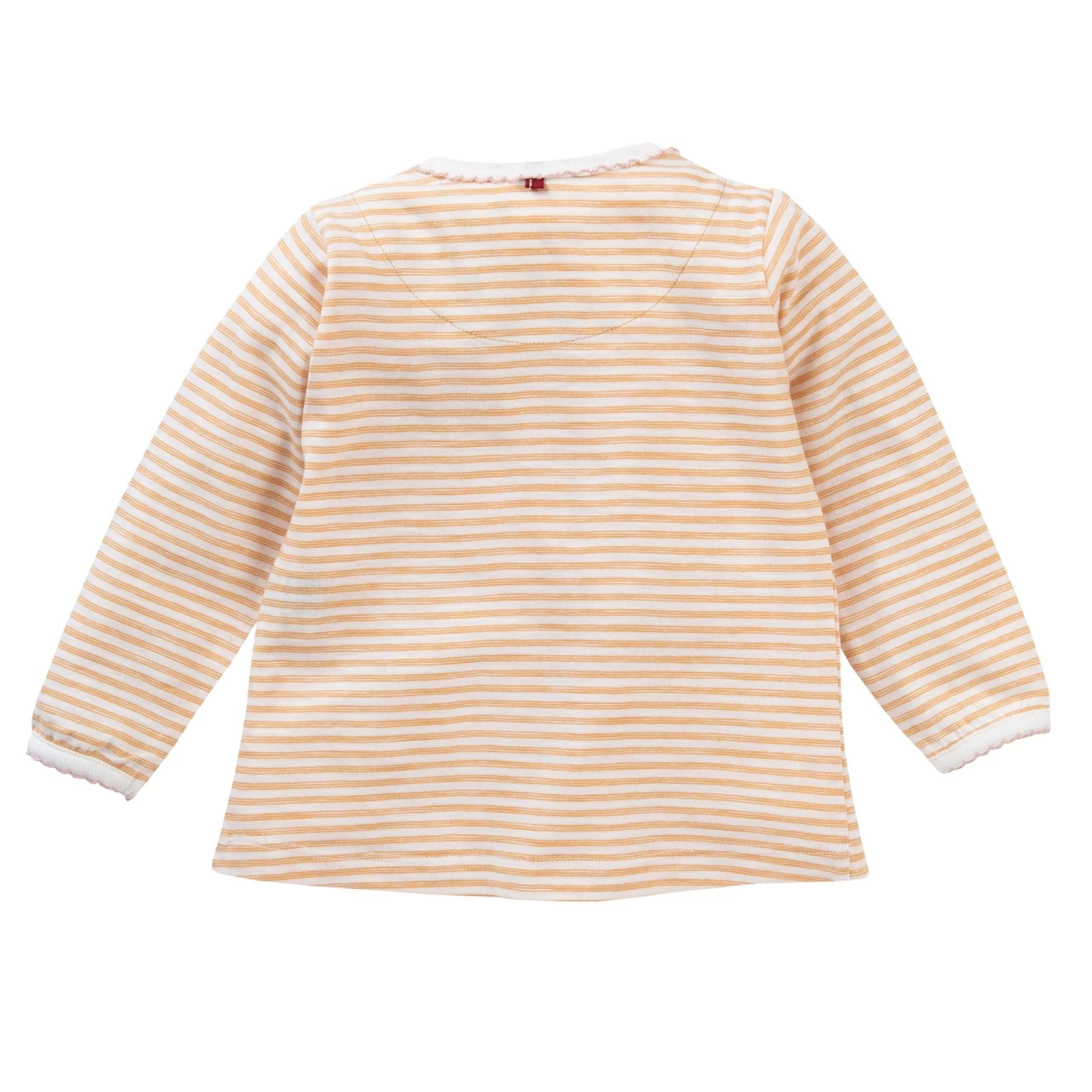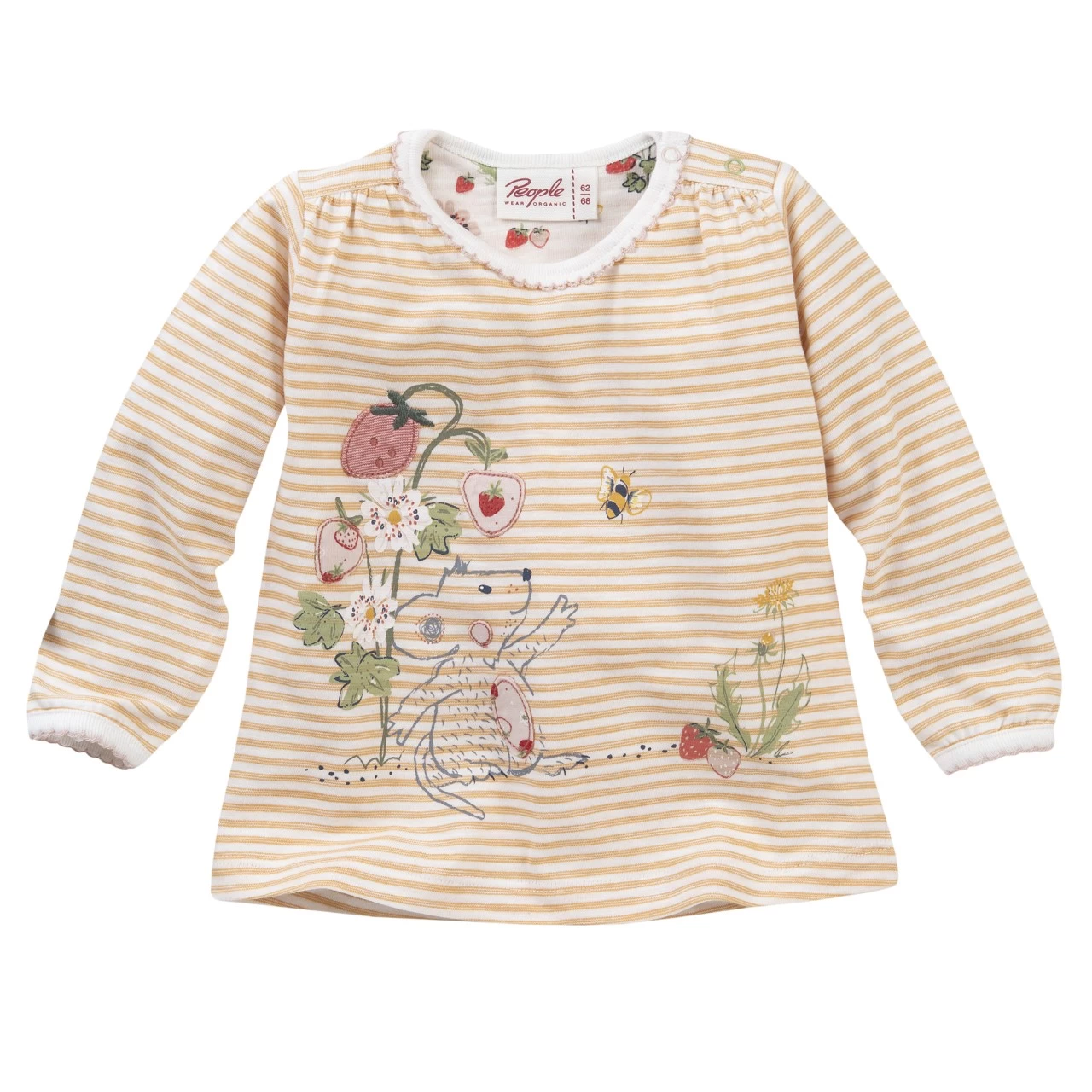 People Wear Organic – Langarmshirt honiggelb geringelt mit Applikation „Maus“ aus Bio-Baumwolle