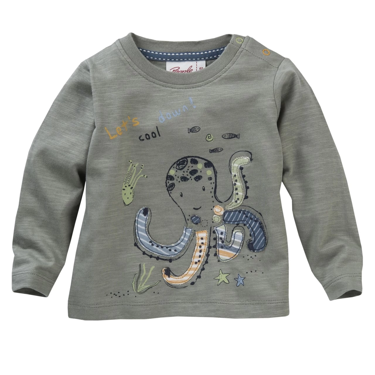 People Wear Organic – Langarmshirt khaki mit Applikation „Oktopus“ aus Bio-Baumwolle