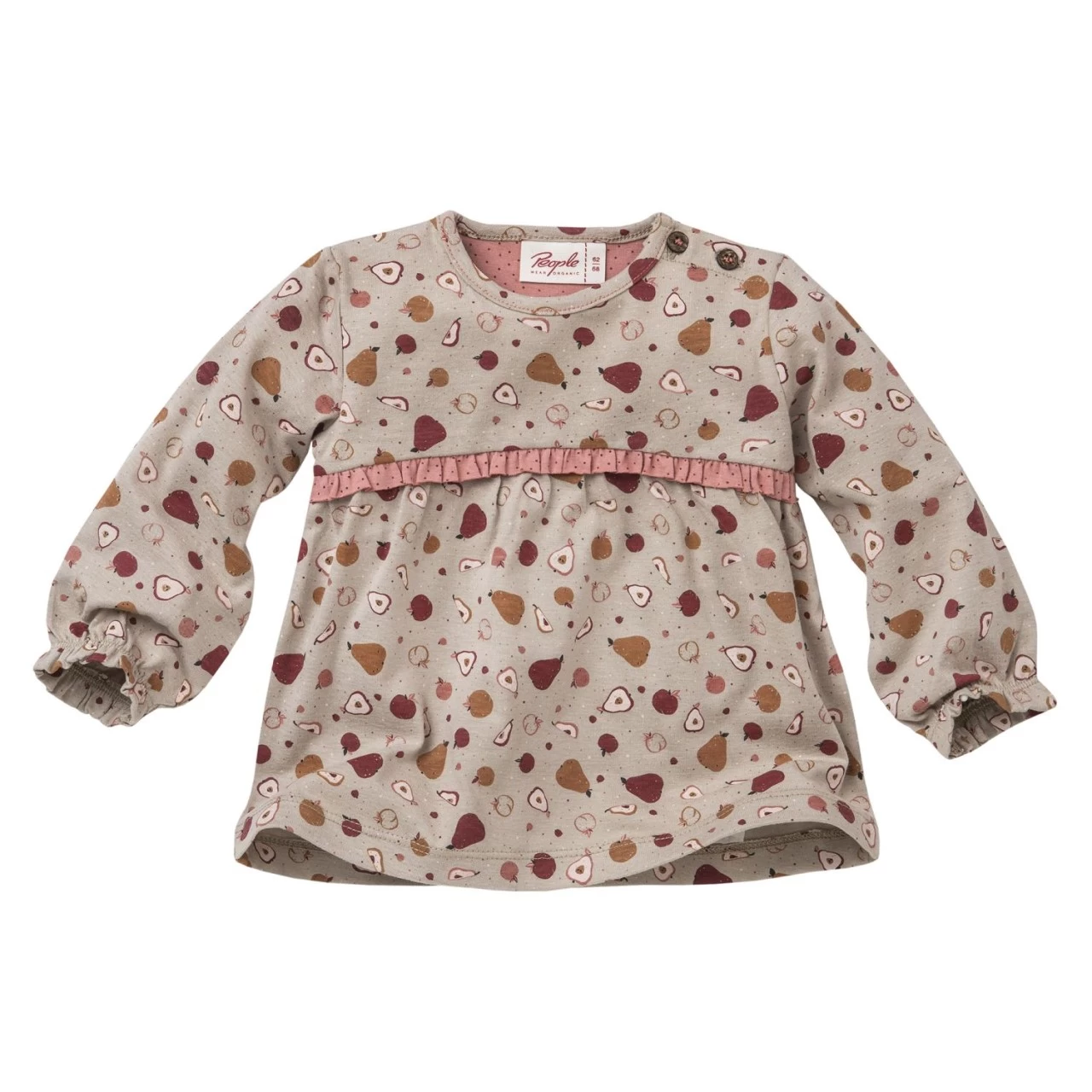 People Wear Organic – Langarmshirt steingrau mit Druck „Birnen“ aus Bio-Baumwolle