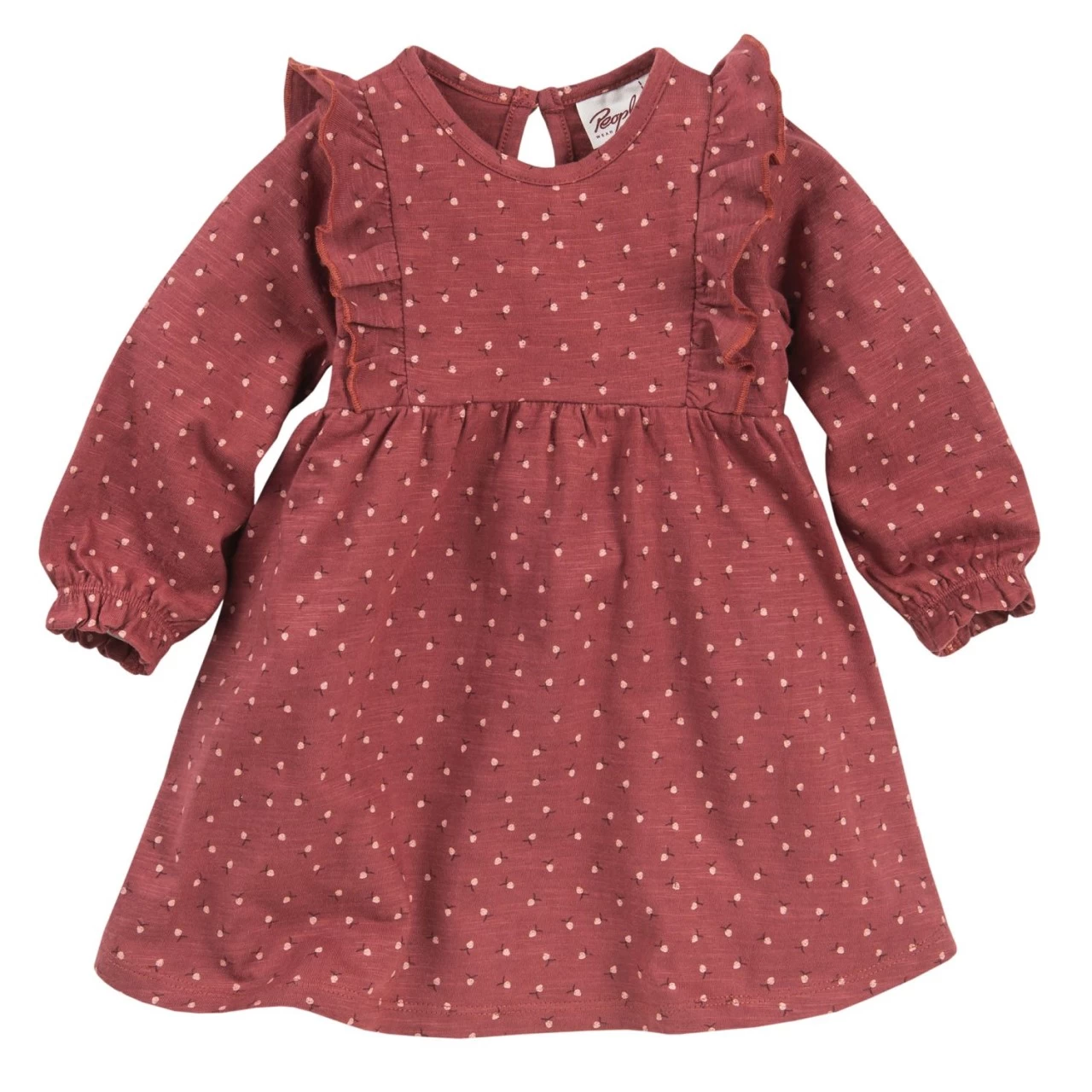 People Wear Organic Langarmkleid dunkelrot mit Druck „kleine Beeren“ aus Bio-Baumwolle