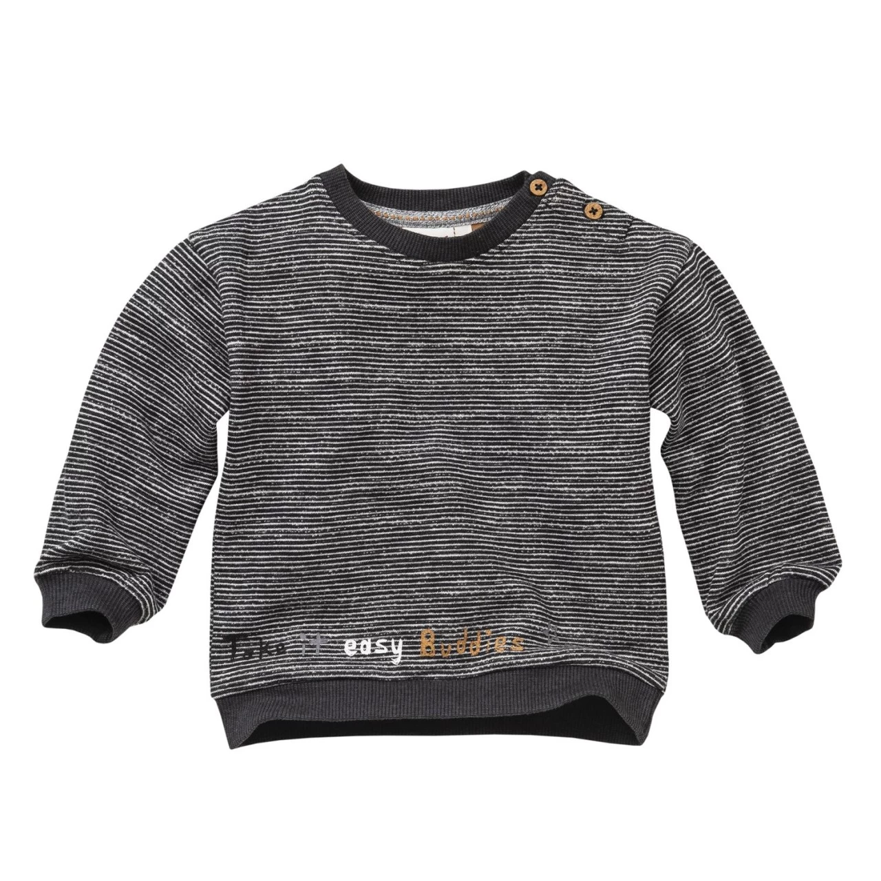 People Wear Organic Sweatpullover anthrazit geringelt mit Schriftdruck „Take it easy Buddies“