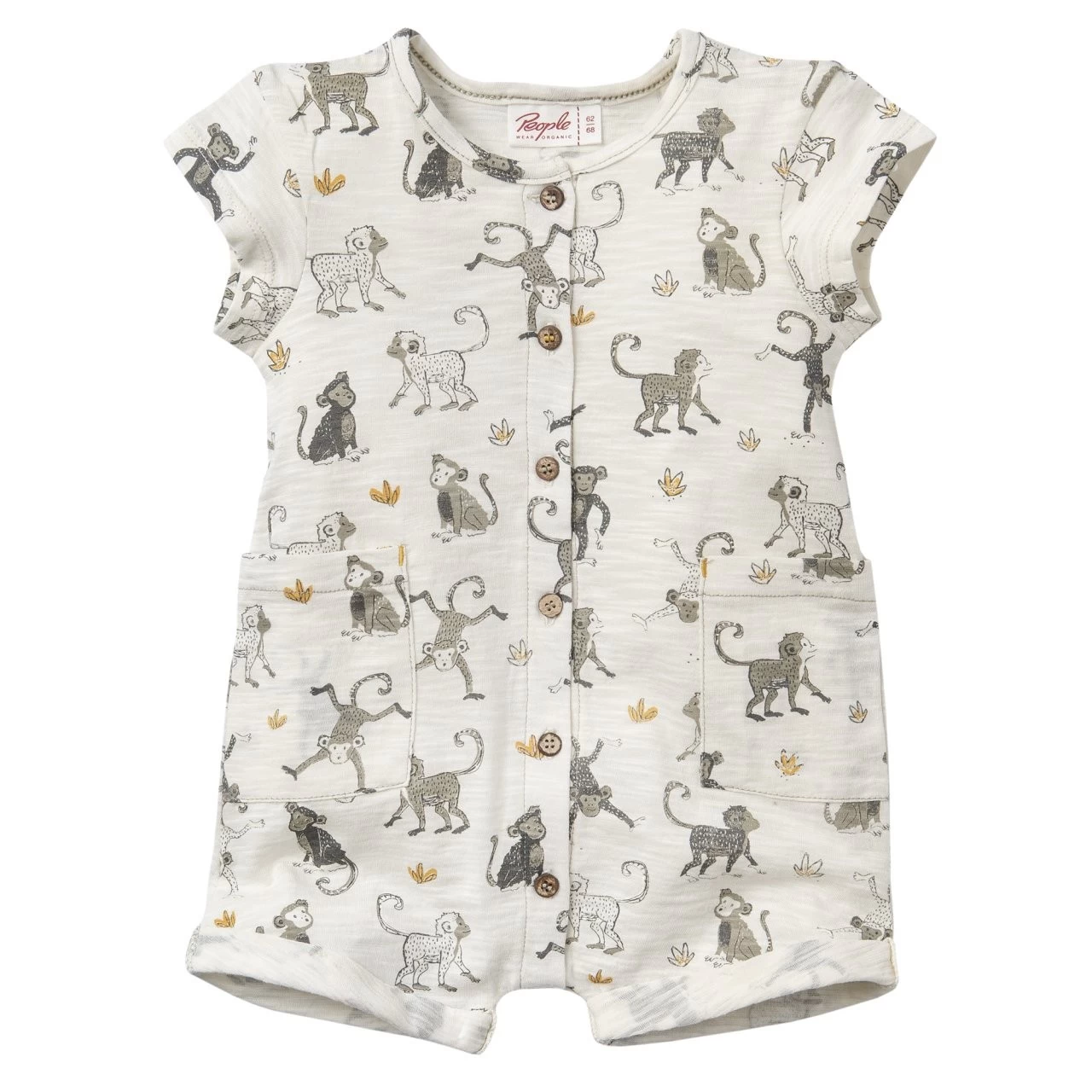People Wear Organic Kurzarm Overall „Affenbande“ weiß