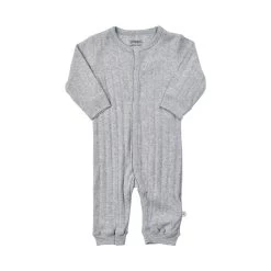 Der weiche gerippte Baby-Jumpsuit in schönem hellgrau melange ist aus extra feiner und GOTS zertifizierter Biobaumwolle gefertigt. Ein Einteiler ist ein tolles Kleidiungsstück, er sitzt prima, sieht gut aus und nichts rutscht aus dem Hosenbund. Dank der langen Druckkopfleiste klappt das An- und ausziehen ganz schnell. Auch für ungeübte Eltern oder Großeltern , die das Baby wickeln, ist es kein Problem.