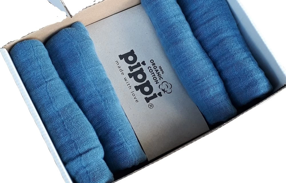 pippi® Organic Stoffwindeln mittelblau Spucktücher Mullwindeln 4er Pack
