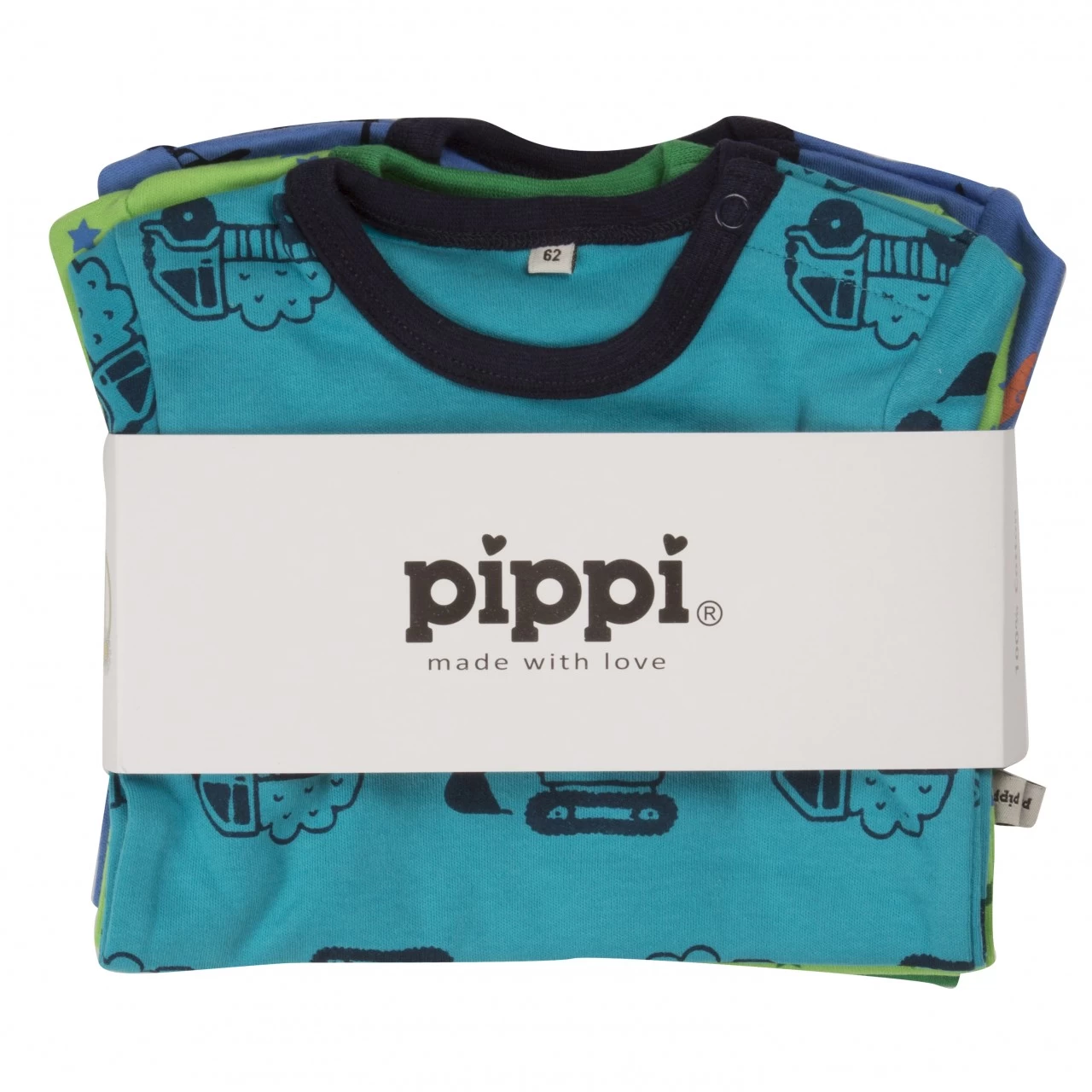 Pippi Baby Kurzarm Body blau/grün 4er Pack mit modischem Druck