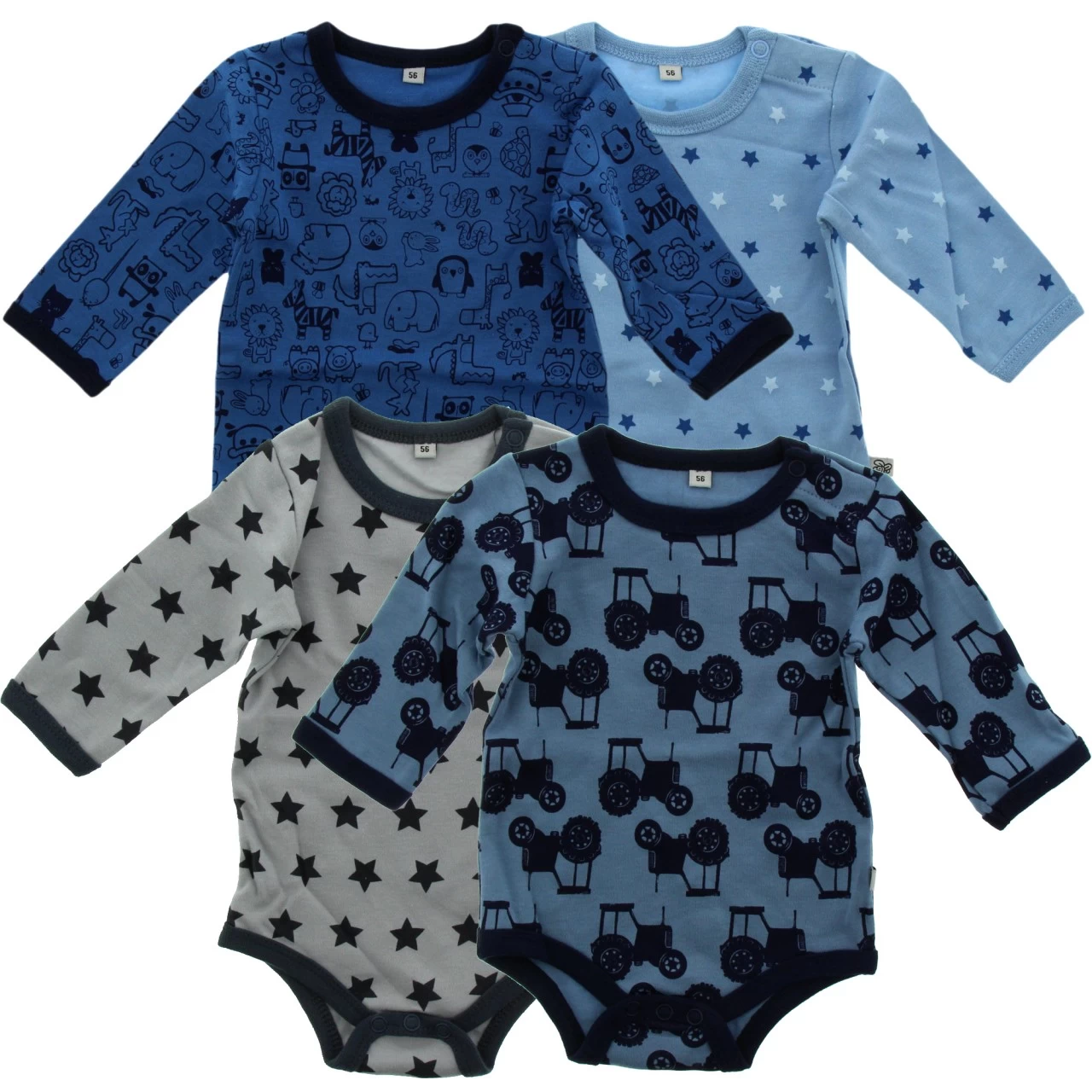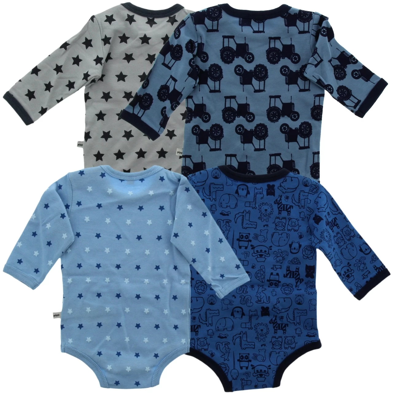 Pippi Langarm Body Traktor & Sterne Blau 4er Pack Baumwolle